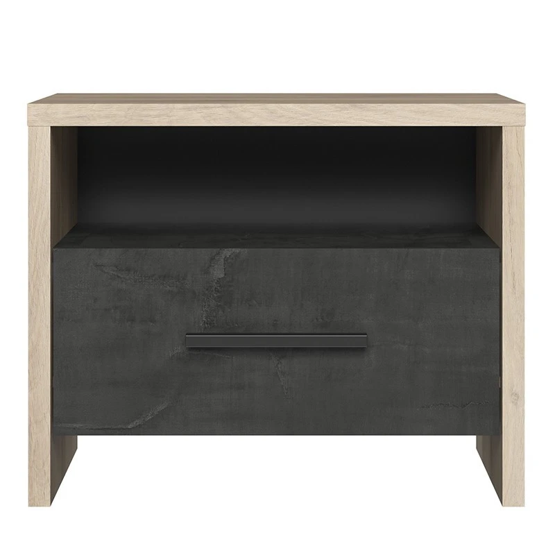 Lit 2 personnes pour literie de dimensions 160×200 cm. Bicolore pour être dans les tendances. Assorti au chevet et à la commode de même nom. Livré sans sommier, ni matelas, ni literie. Équerres et traverse de renfort. A monter soi-même.