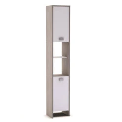La colonne Honolulu en bois blanc et chĂȘne champagne 2 portes 2 niches saura vous sĂ©duire grĂące Ă sa faible prise de place au sol tout en proposant un large rangement. IdĂ©al pour les petits espaces cherchant Ă pouvoir ranger le maximum de produits en un minium de place, elle alliera, de plus, sa praticitĂ© Ă son Ă©lĂ©gance. En effet, ses coloris trĂšs modernes permettront une adaptation rapide Ă de nombreuses salles de bain. Chaque porte cache une Ă©tagĂšre intĂ©rieure afin de diviser le volume en deux et stocker ainsi plus de produits. L’ensemble de la collection vous est proposĂ©e en accessoires pour pouvoir complĂ©ter votre gamme selon vos envies ! A monter soi-mĂȘme, notice incluse.
