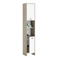 La colonne Honolulu en bois blanc et chĂȘne champagne 2 portes 2 niches saura vous sĂ©duire grĂące Ă sa faible prise de place au sol tout en proposant un large rangement. IdĂ©al pour les petits espaces cherchant Ă pouvoir ranger le maximum de produits en un minium de place, elle alliera, de plus, sa praticitĂ© Ă son Ă©lĂ©gance. En effet, ses coloris trĂšs modernes permettront une adaptation rapide Ă de nombreuses salles de bain. Chaque porte cache une Ă©tagĂšre intĂ©rieure afin de diviser le volume en deux et stocker ainsi plus de produits. L’ensemble de la collection vous est proposĂ©e en accessoires pour pouvoir complĂ©ter votre gamme selon vos envies ! A monter soi-mĂȘme, notice incluse.