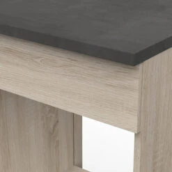Le coloris chêne brossé s’accorde parfaitement avec le plan de travail coloris gris béton.